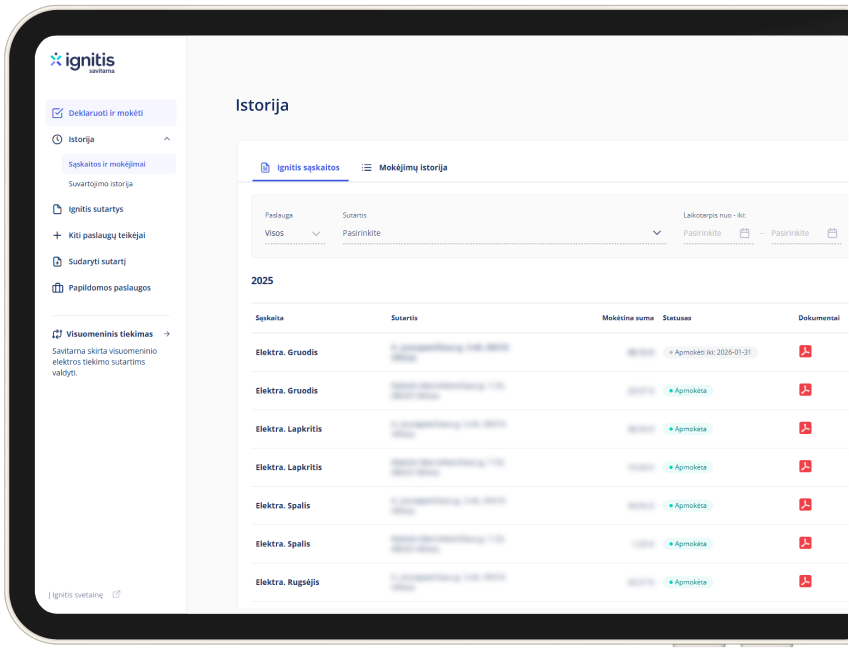 Ignitis klientasStebėkite visą savo mokėjimų istoriją, palyginkite skirtingų mėnesių sąskaitas.