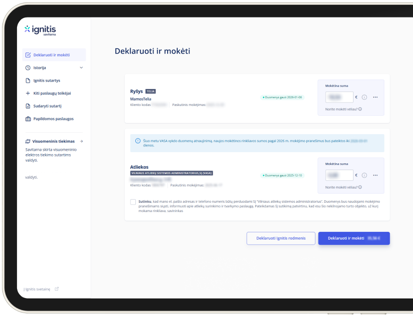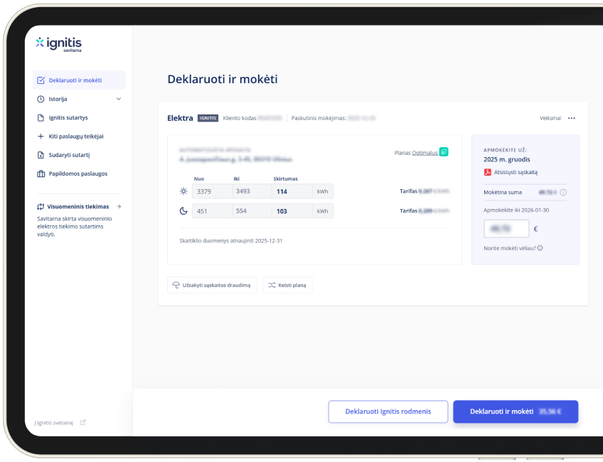 Deklaruokite elektros, dujų ir kitų paslaugų rodmenis bei patogiai apmokėkite sąskaitas.