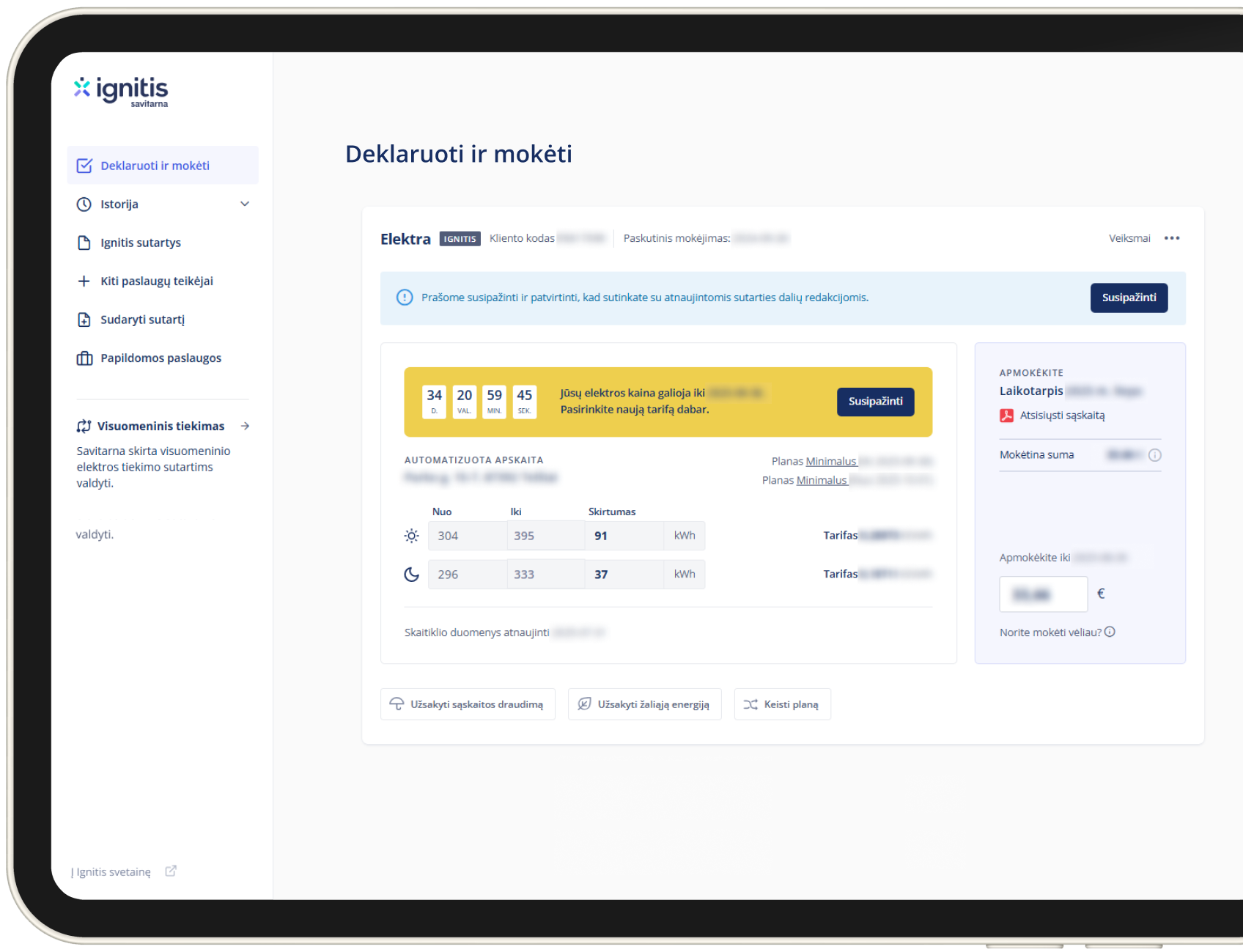 Ignitis klientasPaprastai, vos per kelias minutes pratęskite elektros tiekimo planą, kuomet to reikia.