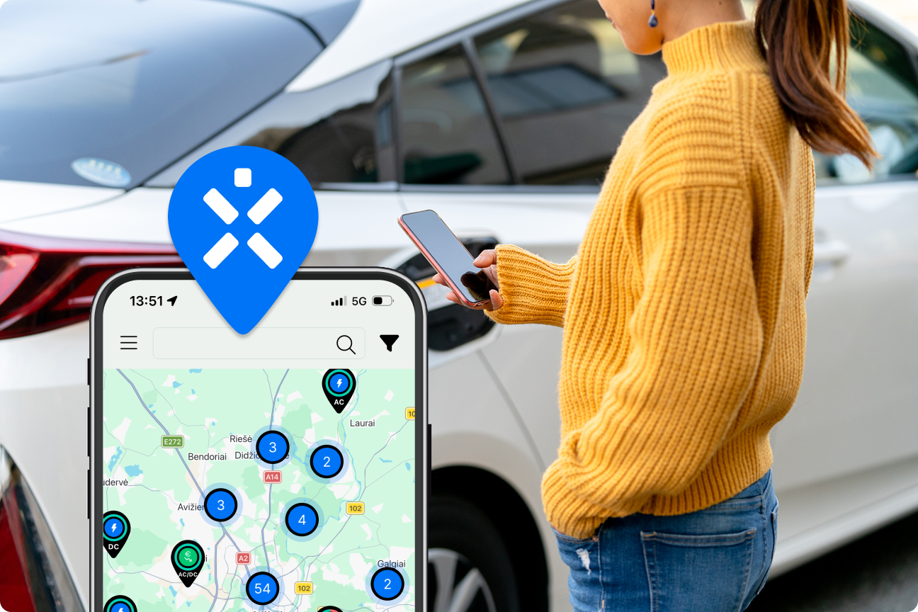 Įsikrovimas su programėle prasideda dar kelyje, nes joje patogu rasti artimiausią įkrovimo stotelę, suplanuoti maršrutą ir matyti visą aktualią informaciją: