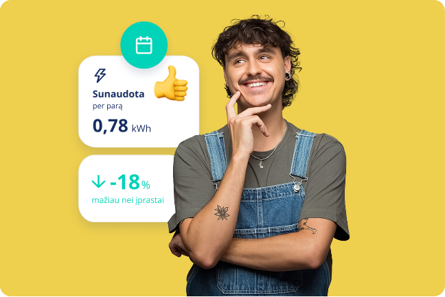 Žinant, kiek elektros sunaudojate, bus ženkliai paprasčiau atrasti jums tinkamiausią būdą sutaupyti. Turėdami programėlę, savo telefone galėsite stebėti, kiek elektros suvartojote skirtingu metu – per valandą, parą, savaitę, mėnesį ar metus. Programėlėje rodomi elektros vartojimo duomenys nuo pat išmanaus skaitiklio įrengimo jūsų namuose.